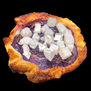 - Découper la Feta AOP grecque en petits cubes et disposer la sur les tartes à la sortie du four avec un filet d’huile d’olive et éventuellement des olives de kalamata AOP. Deguster immédiatement la Tarte tatin de choux rouge et Feta AOP avec une salade de tomate ou une salade verte.