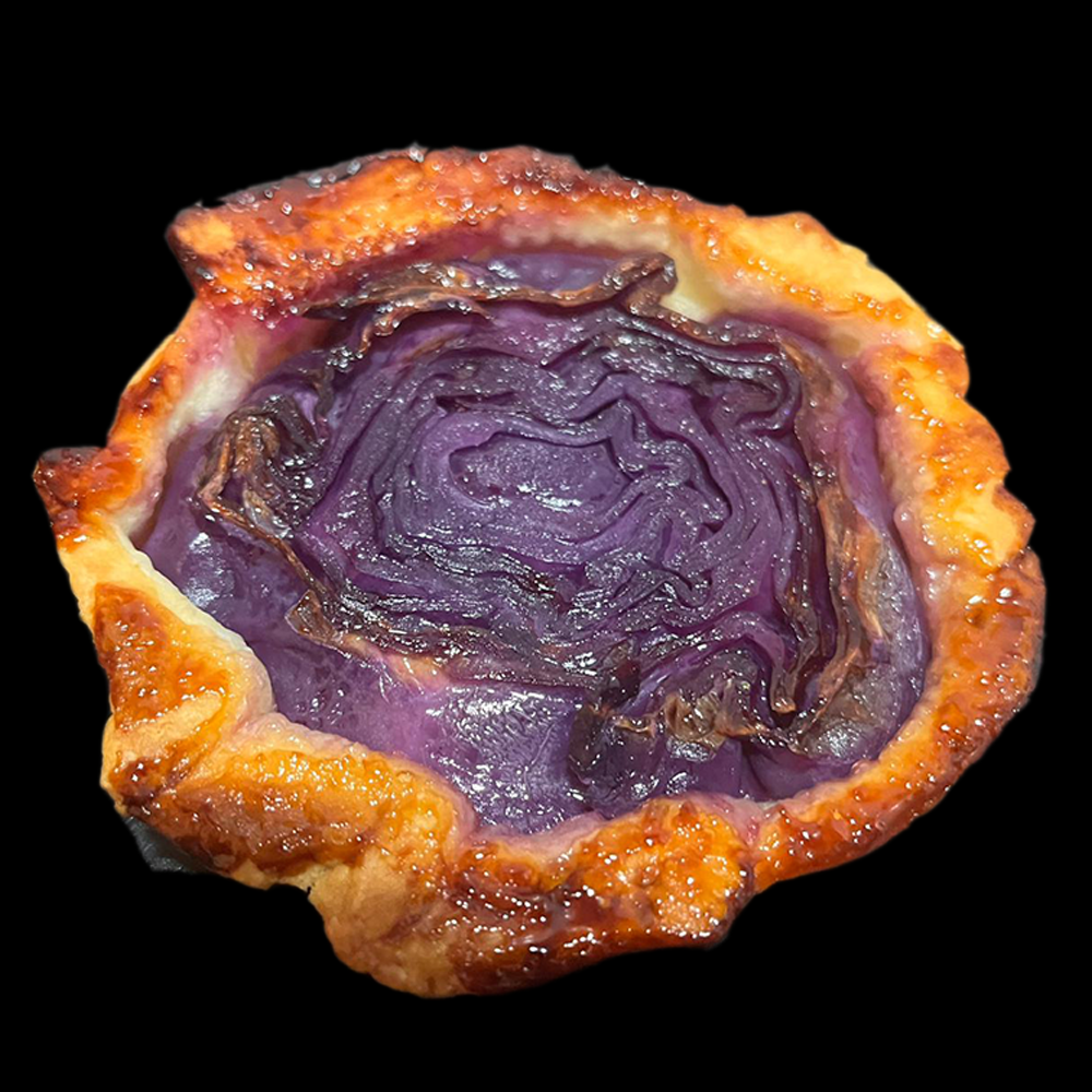 - Sur le papier sulfurisé, déposer 1 cuillère à café de miel de lavande IGP et ajouter un filet d’huile d’olive avant de le recouvrir des tranches de choux rouge puis de la pâte feuilletée. Repeter pour obtenir le nombre de tarte souhaitées.